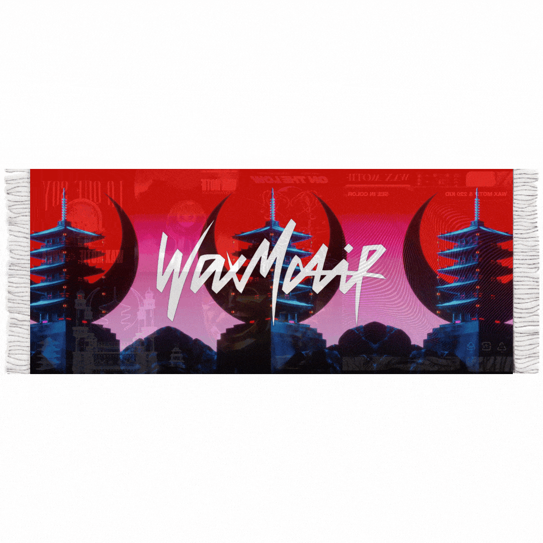 Custom reversible print dye sub "House of Wax" Rave Pashmina. Lightweight, ultra-soft fabric with fringed edges. Double-sided prints. Approximate measurements: 75" length x 30" width
